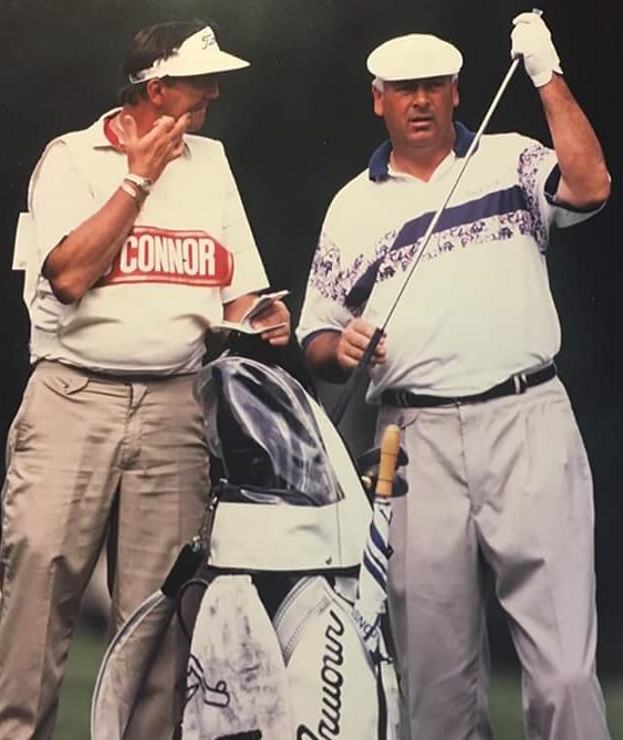 (above) #14 Paul with Christy O'Connor Junior whilst winning Dunhill British Masters at Woburn in 1992